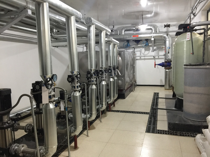 鍋爐房總設(shè)計(jì)負(fù)荷為11000KW,鍋爐房設(shè)置10臺(tái)1100KW全預(yù)混高效冷凝燃?xì)鉄崴仩t,提供冬季建筑物采暖熱源。