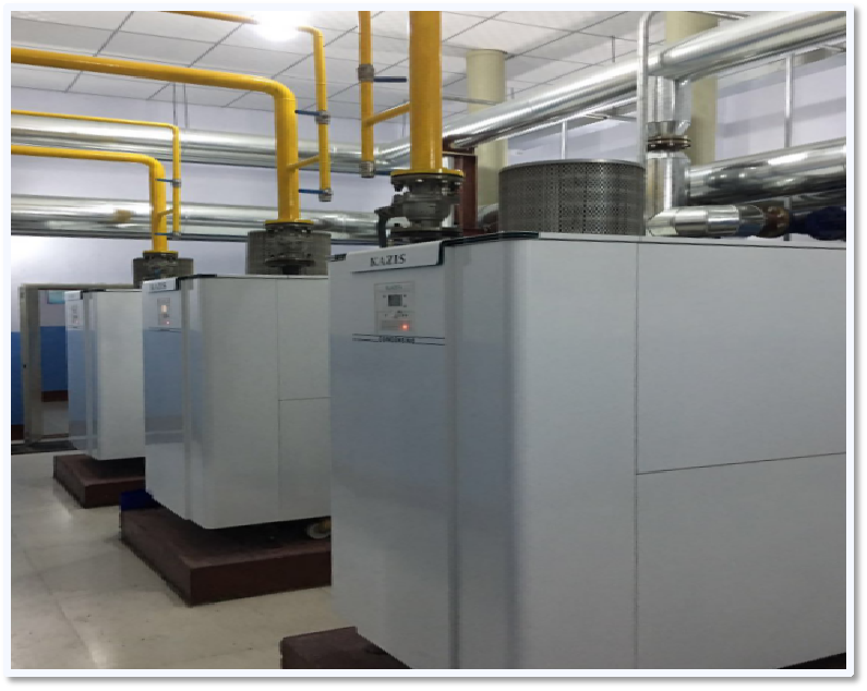 2019使用3臺CONDENSING1050卡吉斯(KAZIS)全預混冷凝燃氣鍋爐,用于供暖,達到預期的環保效果及節能效益。